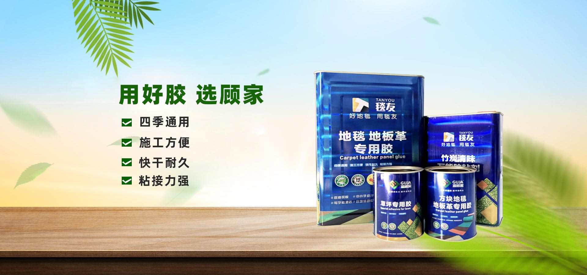山东顾家胶业有限公司自创立以来一直专注于人造草坪专用胶、808防水卷材专用胶粘剂、PVC 地板专用胶、万能胶、皮革 床垫专用喷胶、氯丁胶、无腐蚀泡沫苯板胶、橡塑胶、水性多功能地毯胶、U-PVC排水专用胶、U-PVC给水专用胶、广告字专用免钉胶、多用途免钉胶、多功能除胶剂、结构胶、源顾家自喷胶等产品的研发、生产与销售一体化的高科技创新企业!